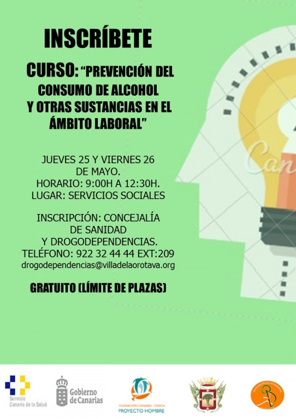 La Fundación Canaria CESICA PROYECTO HOMBRE CANARIAS, en colaboración con la Consejería de Sanidad del Gobierno de Canarias, a través de la Dirección General de Salud Pública, con el fin de desarrollar estrategias de prevención del consumo de drogas en el ámbito laboral, ofrece unas Jornadas Formativas de carácter gratuito en el Ayuntamiento de la Orotava.