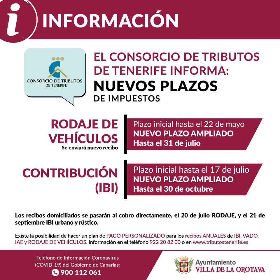 EL CONSORCIO DE TRIBUTOS INFORMA DE LOS NUEVOS PLAZOS PARA EL PAGO DE IMPUESTOSl