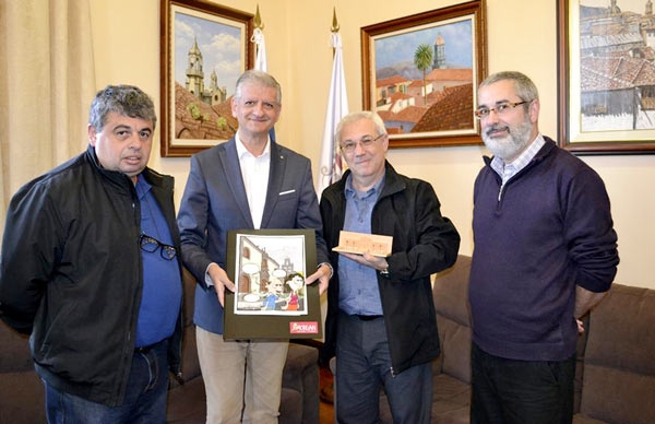 El alcalde Francisco Linares lo recibió en la Casa Consistorial y le felicitó por su trayectoria, además de agradecer su visita y el que acerque su interesante y comunicativa actividad a los orotavenses. Morgan obsequió al municipio con una de sus obras, una viñeta en la que aparecen sus personajes Carmelito y Candelaria visitando el patrimonio y centro histórico de La Orotava.