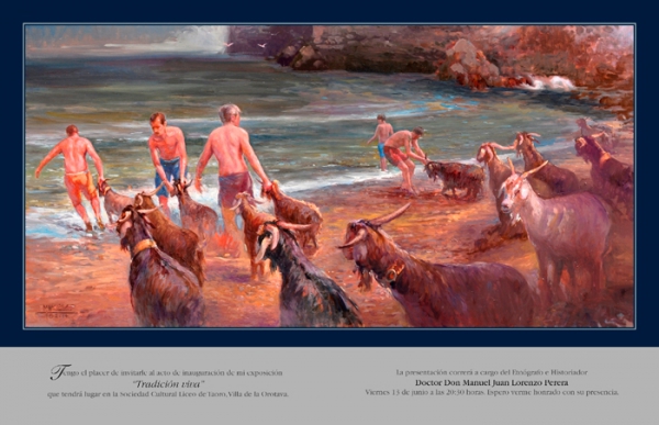 Lorenzo Perera describió pormenorizadamente el baño de las cabras, el singular ritual purificador de las primeras luces de San Juan, y Osman vivificó la tradición con el cromatismo más perfeccionista que pudo imprimir hasta convertir la serie en una reivindicación misma del costumbrismo. La sombra de Chucho Dorta, el hombre que se desgañitó para que el ritual cobrase pujanza, planeaba mientras tanto sobre el Liceo. Y hasta Amílcar Fariña, el continuador que no cesa con tal de explicar los orígenes y el significado del baño y de otras costumbres sanjuaneras, hizo un alto en su convalecencia para asistir a la apertura de la exposición, abierta, por cierto, hasta el domingo 29, el día de la romería.