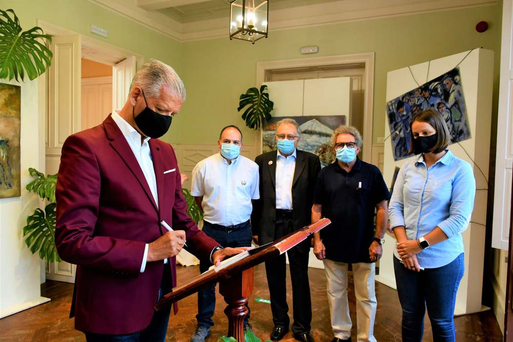 El alcalde de La Orotava Francisco Linares, acompañado de los concejales Luis Perera y Delia Escobar, visitó este viernes [24 de julio] la Sala de Exposiciones que se encuentra en el Parque Cultural Doña Chana con una representación de obras del pintor Otazzo, asesinado hace una semana en Venezuela.