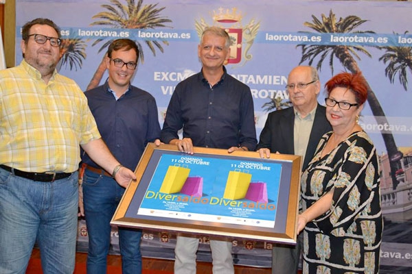 El alcalde Francisco Linares presentó la nueva edición junto al edil delegado de Comercio, Felipe David Benítez, y los representantes de las asociaciones de pequeños y medianos empresarios del municipio— Fernando Plasencia (Apymevo); Mila Castro (Oropyme) y Santiago Martínez (Unicentro).