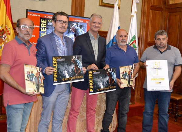 El alcalde de La Orotava, Francisco Linares; el consejero insular de Agricultura, Jesús Morales; y el presidente y gerente de la Asociación Cultural Pinolere, Leoncio Luis y Jesús García, respectivamente, presentaron en el salón de actos del Consistorio villero el amplio programa que se desarrollará entre el 4 y 6 de septiembre, vinculado totalmente a la cultura popular. Linares subrayó la calidad y valor de esta feria, referente en toda Canarias en el ámbito de la artesanía y oficios tradicionales. Muestra que se desarrolla en un marco incomparable como es el barrio de Pinolere y su recinto etnográfico con más de 10.000 metros cuadrados. Por otro lado destaca el trabajo ejemplar que ha realizado la Asociación Cultural Pinolere durante las últimas tres décadas, “pues su labor ha permitido recuperar y conservar nuestras tradiciones y oficios”. Por tal motivo, “es un proyecto con mucho futuro que seguirá contando con el apoyo del Ayuntamiento villero”.