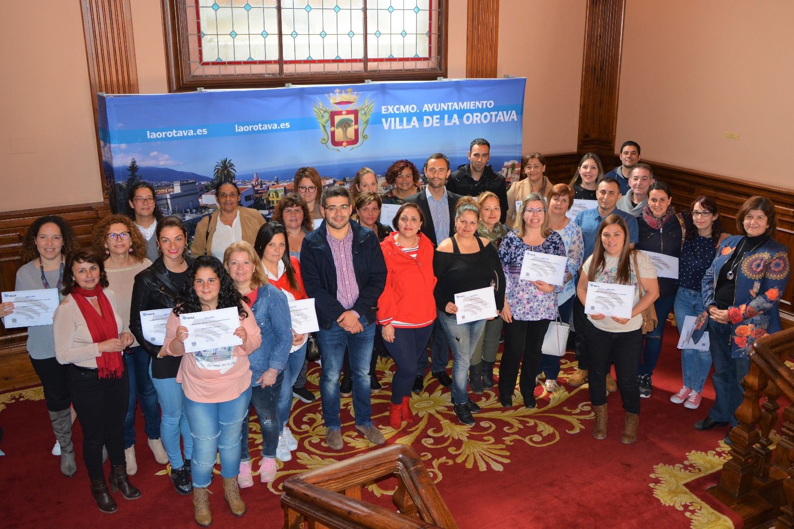 Los ediles orotavenses destacaron que desde el Ayuntamiento se aboga por la práctica constante de acciones de estas características, orientadas a la formación para ofrecer mejores recursos y herramientas a las personas y colectivos que buscan un empleo o deseen progresar en el ámbito personal y profesional. Desde el Consistorio se continuarán ofreciendo cursos a través de distintas áreas, y respaldando los que organizan otras entidades y asociaciones. Así, durante el pasado 2017 se formaron, a través de los cursos ofertados por la Agencia de Empleo y Desarrollo Local, un total de 591 personas (293 mujeres y 297 hombres).