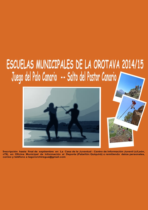 Desde principios del mes de julio hasta finales de septiembre de 2014, se encuentra abierto el período de inscripción en las Escuelas Municipales de La Orotava de Juego del Palo Canario y de Salto del Pastor.