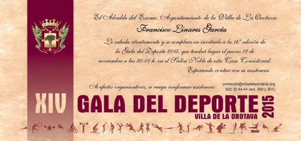 12/11/2015Esta noche a las 20:00 horas tendrá lugar la XIV Gala del Deporte en el Salón de Plenos del Ayuntamiento de La Orotava.