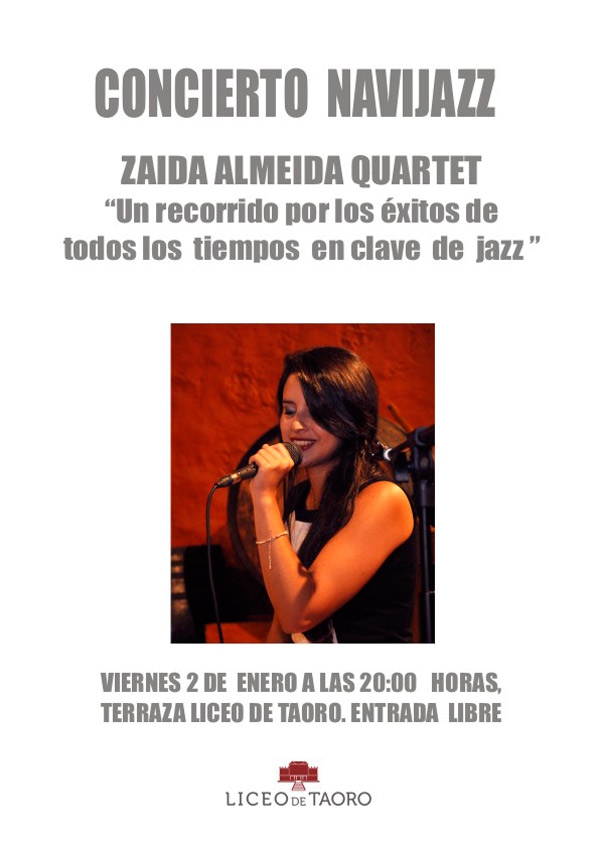 Este viernes, 2 de enero, actuación de Zaida Almeida Quartet a las 20.00 horas en el Liceo de Taoro. Entrada libre.