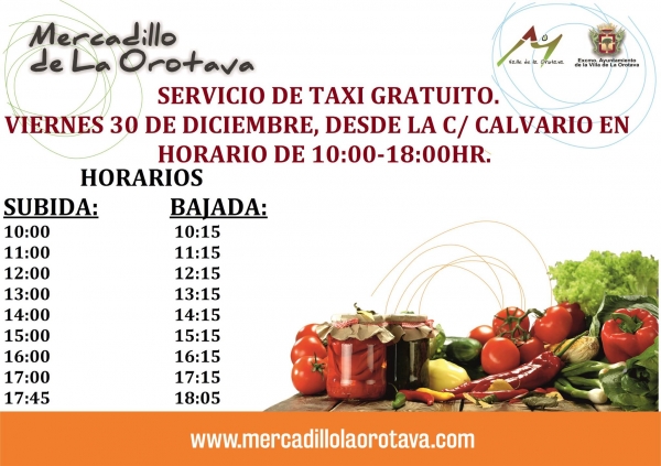 Este viernes, 30 de diciembre, abre el Mercadillo del Agricultor de La Orotava y el ayuntamiento ofrece de nuevo taxis gratis