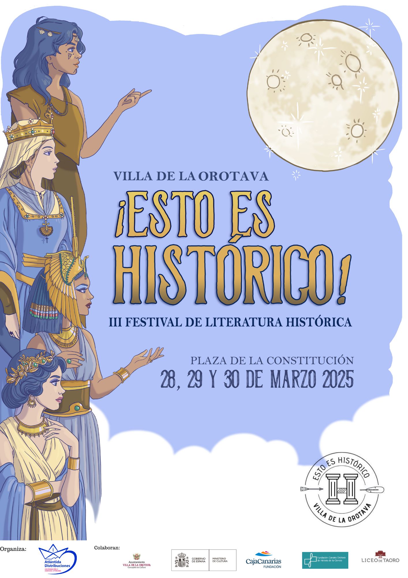 La Villa de La Orotava se prepara para sumergirse nuevamente en el apasionante mundo de la historia con la celebración del III Festival de Literatura Histórica ¡Esto es Histórico!, que se llevará a cabo los días 28, 29 y 30 de marzo en la emblemática plaza de la Constitución.