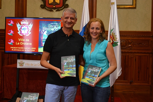 La escritora Eva Violán presentó ayer su primera novela, "Sarah Bisshopp", en un acto que se celebró en el salón noble del Ayuntamiento de La Orotava.