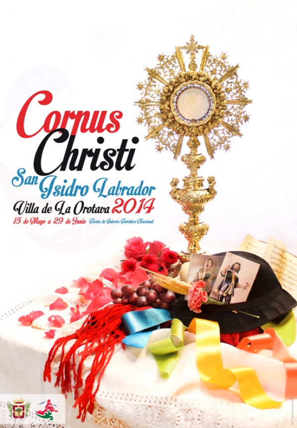 El cartel que este año será el encargado de anunciar las Fiestas en honor al Corpus Christi y San Isidro Labrador de la Villa de La Orotava 2014, está formado por un bodegón fotográfico, en el cual interactúan diferentes elementos característicos de estas fiestas. Un bodegón compuesto de la siguiente manera: