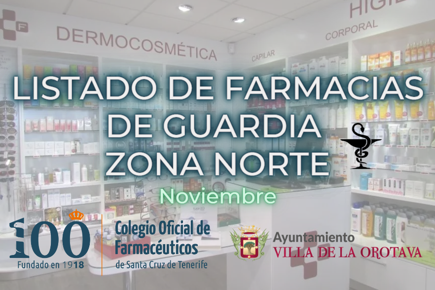 27/10/2022Documentos Adjuntos: Listado de farmacias de guardia en Buenavista y Los Silos Noviembre 2022 Listado de farmacias de guardia en Garachico Noviembre 2022 Listado de farmacias de guardia en Icod de los vinos Noviembre 2022 Listado de farmacias de guardia en La Guancha - San Juan de la Rambla Noviembre 2022 Listado de farmacias de guardia en La Matanza - La Victoria - Santa Úrsula Noviembre 2022 Listado de farmacias de guardia en La Orotava - Los Realejos Noviembre 2022 Listado de farmacias de guardia en Puerto de la Cruz Noviembre 2022 Listado de farmacias de guardia en Tacoronte - El Sauzal Noviembre 2022 Listado de farmacias de guardia en Valle Guerra - Bajamar - Tejina y Tegueste Noviembre 2022