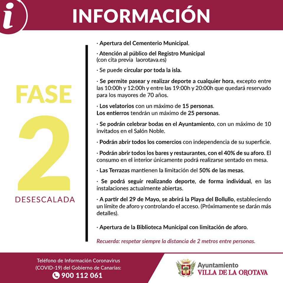 23/05/2020El próximo lunes, 25 de mayo, siguiendo con el proceso de desescalda, pasamos a la fase 2, y aquí tienes información a tener en cuenta.