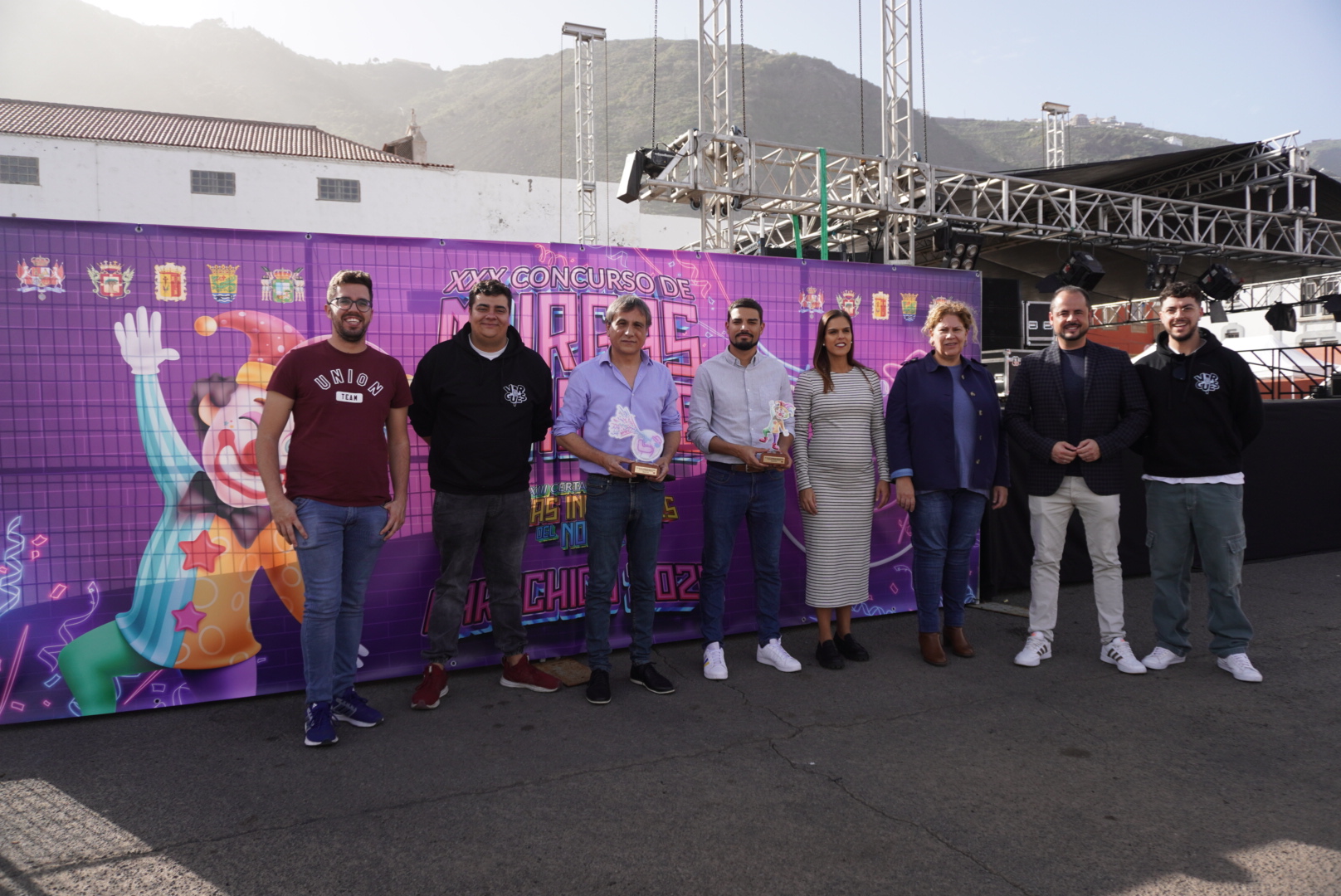 El alcalde de la Villa y Puerto, Heriberto González, y los concejales representantes de los consistorios de la Comunorte se alían para el buen devenir del concurso. Muestra de ello fue la presentación ante los medios de comunicación que tuvo lugar este viernes 26 de enero en el recinto que se llenará de música y color a partir del próximo domingo 28 de enero.
