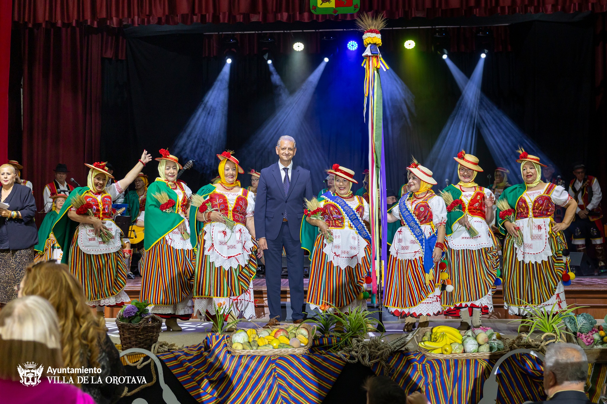 El alcalde Francisco Linares hizo entrega de la banda a Genoveva González Hernández, mientras que la romera mayor saliente, Juana María Hernández, le entregó la vara con las cintas tradicionales.
