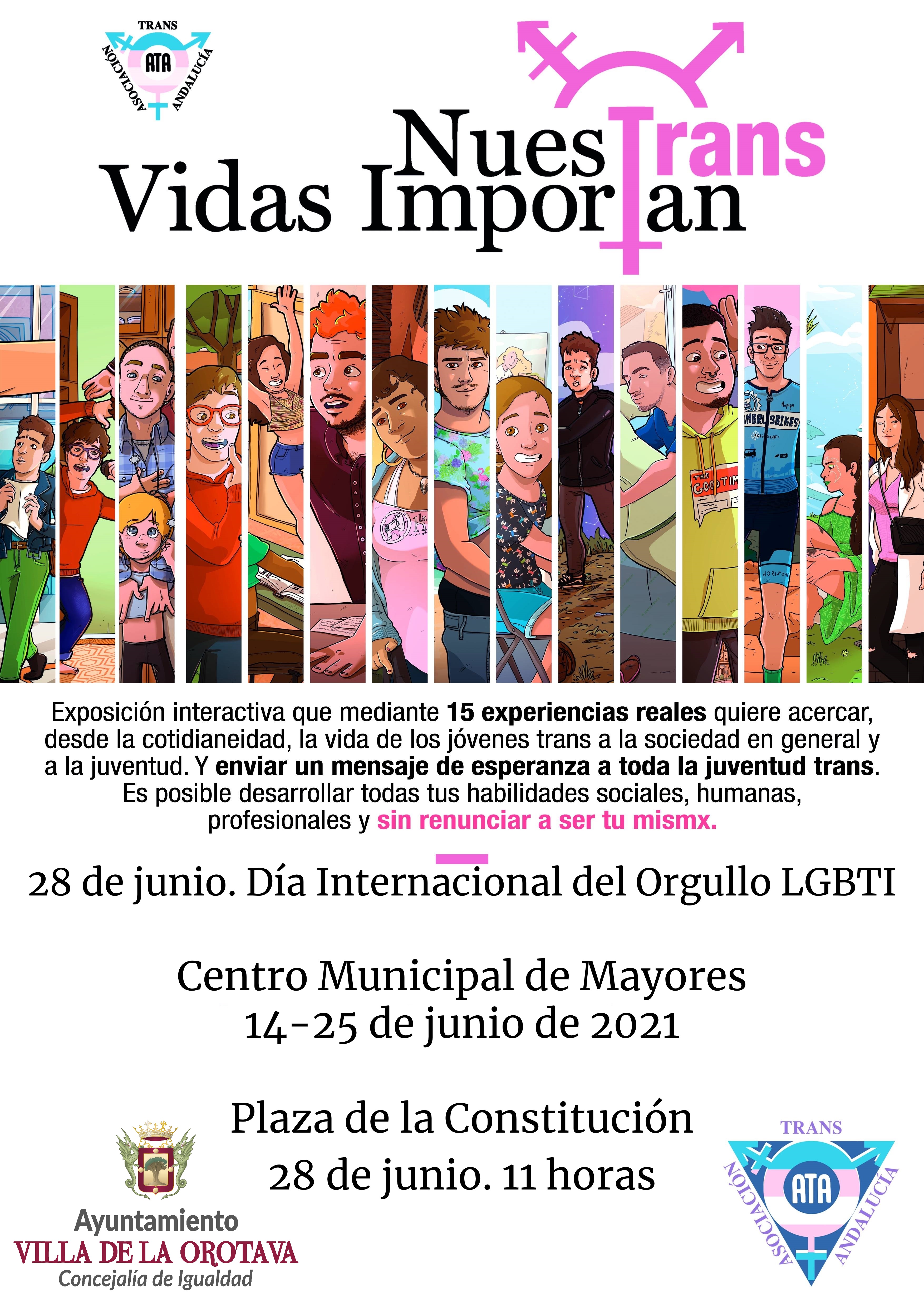 El Ayuntamiento de La Orotava, a través de la Concejalía de Iguadad, que dirige la concejala Belén González, anuncia que con motivo de la celebración, el próximo 28 de junio, del ‘Día Internacional del Orgullo LGTBI’, se acogerá la exposición interactiva ‘Nuestrans Vidas Importan’.