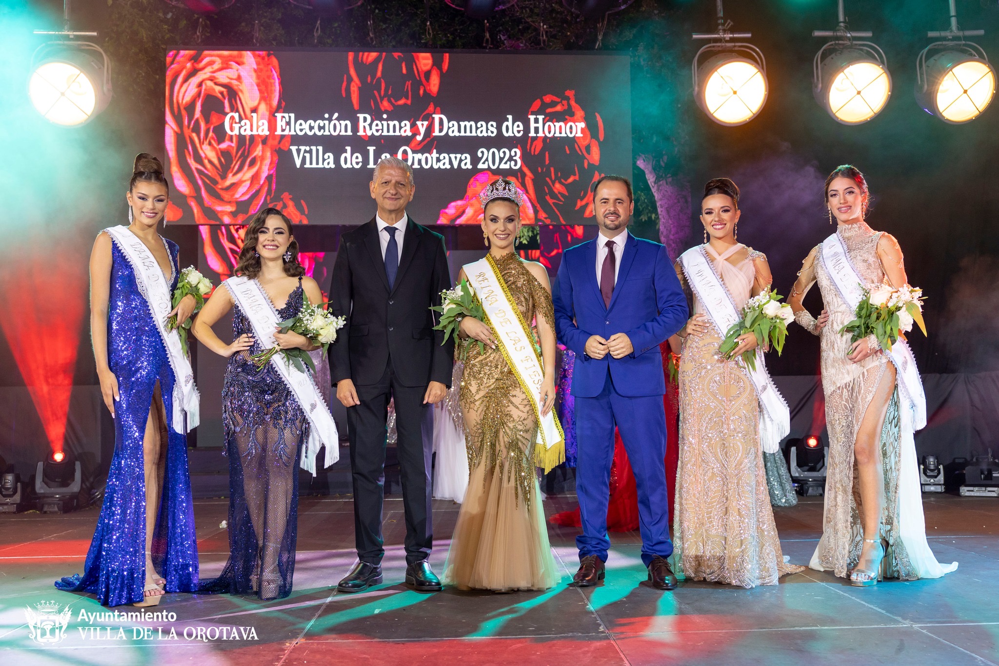 La joven representante de la Asociación de Vecinos Huerta del Moral de Los Cuartos-San Andrés, Itahisa Llanos González, luciendo diseño sobre el escenario de Alexis Santana, ha sido elegida Reina de las Fiestas Patronales de La Orotava que se celebran en honor al Corpus Christi, San Isidro Labrador y Santa María de la Cabeza.