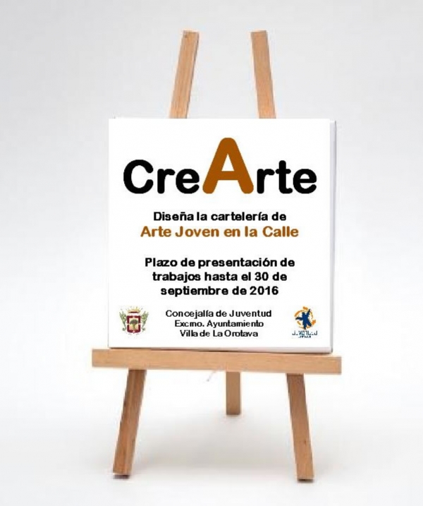La Concejalía de Juventud del Ayuntamiento de La Orotava, que dirige Yurena Luis, ha convocado una nueva edición del concurso CreaArte para el diseño de la cartelería con la que se anunciará la XVII Feria Arte Joven en la Calle, que se celebrará el domingo 30 de octubre.
