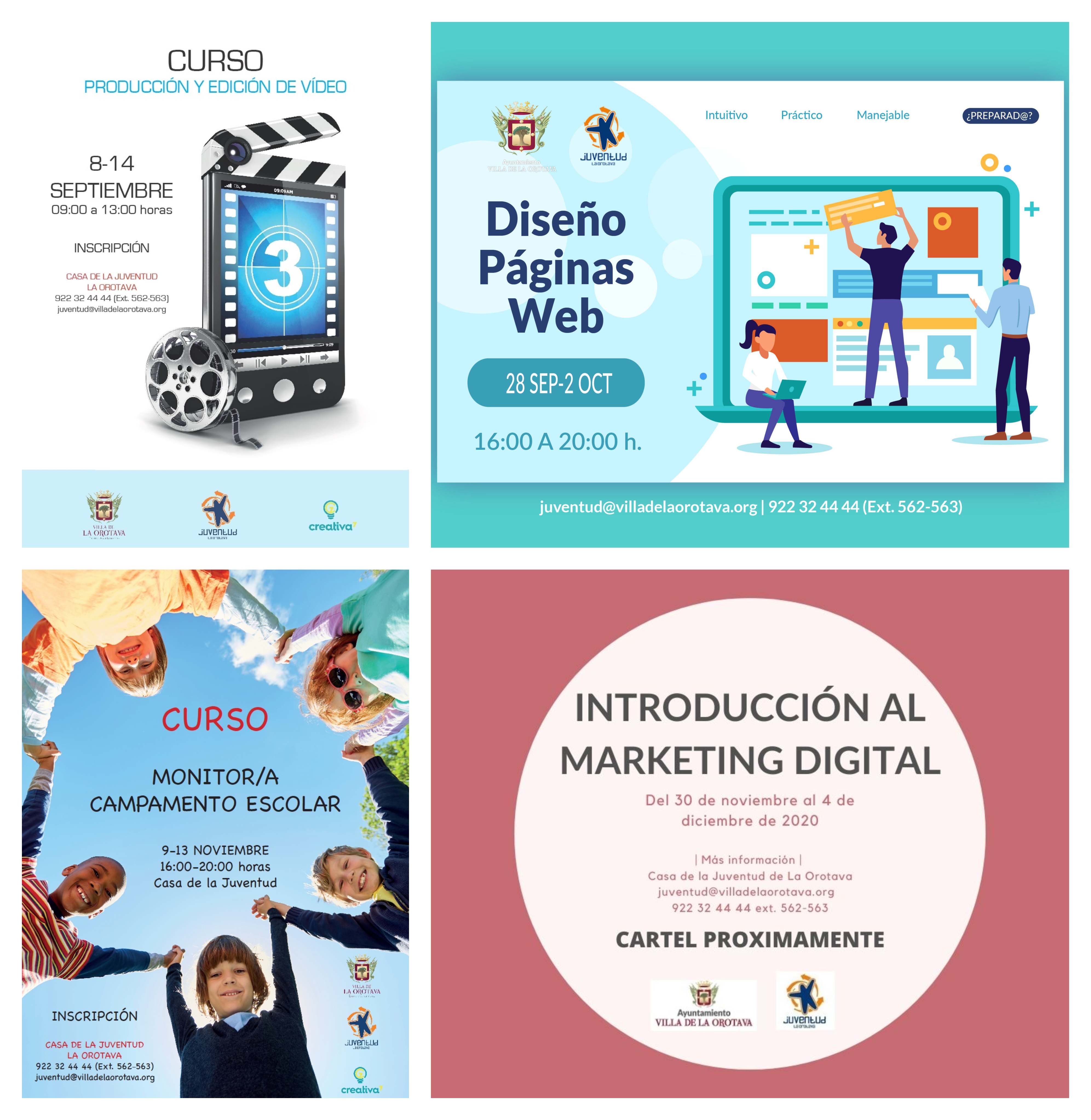 La Concejalía de Juventud del Excmo. Ayuntamiento de la Villa de La Orotava pone en marcha un programa de cursos formativos de cara al último trimestre de 2020. Aunque estaba previsto para realizar en los primeros meses de este año, la situación sanitaria ha obligado a modificar las fechas de realización.