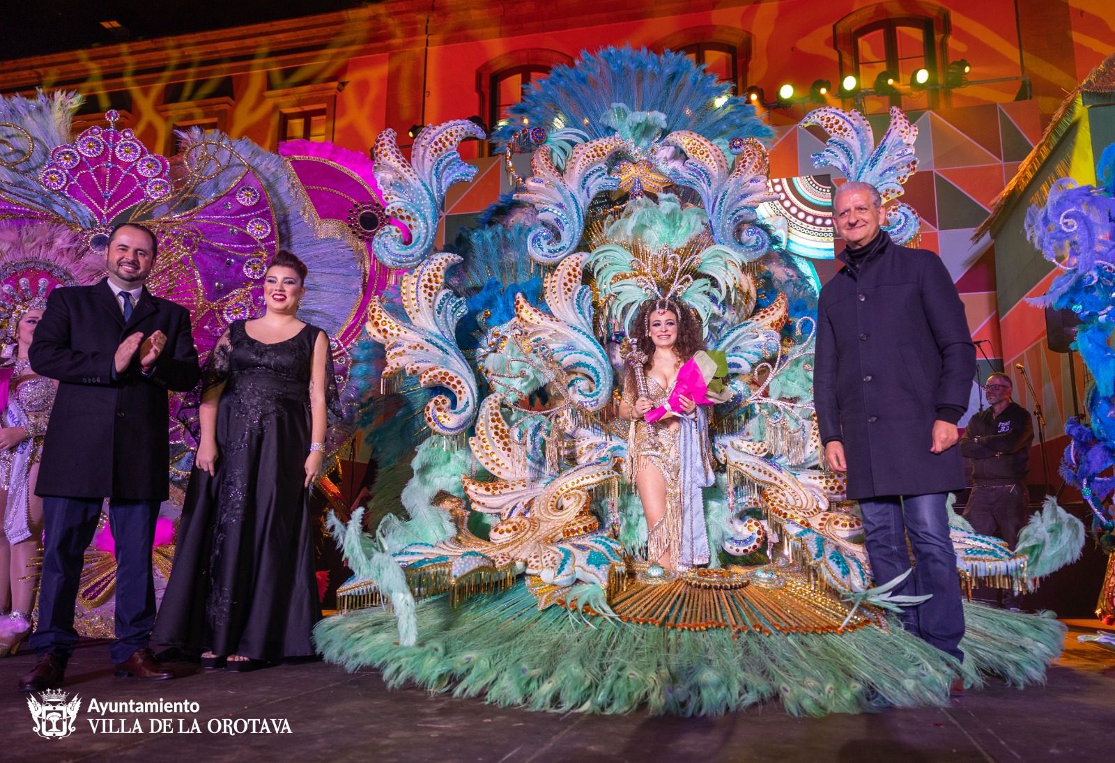 Ni la lluvia ni el frío impidieron que se celebrara la Gala de Elección de la Reina del Carnaval en La Orotava. Nayra González Afonso, quien ha sido la reina desde el año 2020— debido a las suspensión de eventos estos dos años por la pandemia mundial—entregó la banda y el cetro a Karen Hernández Hernández, quien ya es reina del carnaval villero que este año se inspira en África y se desarrolla bajo el lema “El regreso del Carnaval a la Calle”. La joven lució la alegoría ‘‘Sácala a bailar’, diseño de Alfonso Baute y representando a Multicentro Comercial El trompo.