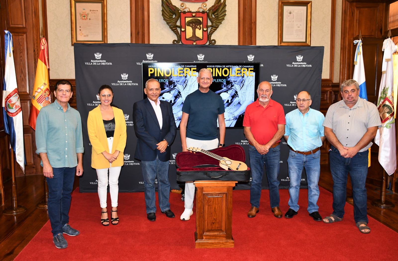 La 38º edición de la Feria de Artesanía de Pinolere se desarrollará el primer fin de semana de septiembre, en  concreto los días 1, 2 y 3, en el recinto etnográfico de este núcleo emblemático de la Villa de La Orotava. La muestra estará dedicada este año a los timpleros, artesanos constructores de timples de Canarias, tal y como muestra el cartel anunciador presentado este martes 8 de agosto en el salón noble de la Casa Consistorial villera de la mano del alcalde Francisco Linares, el consejero insular Efraín Medina y el gerente de la Asociación Cultural Pinolere, Jesús García. El acto también contó con la presencia del presidente de esta asociación, Leoncio Luis; la concejal del distrito, Yurena Luis; el timplista Benito Cabrera, ya que este año se contará con el primer encuentro de timpleros canarios, y Francisco Fariña Izquierdo, maestro artesano constructor de timples, vecino del propio barrio de Pinolere y protagonista del cartel con su imagen trabajando en el taller. El cartel representativo de esta edición es una idea y diseño de Chano Díaz del Taller del Sol con una foto de Juan Agustín Pérez Pérez (Tingo).