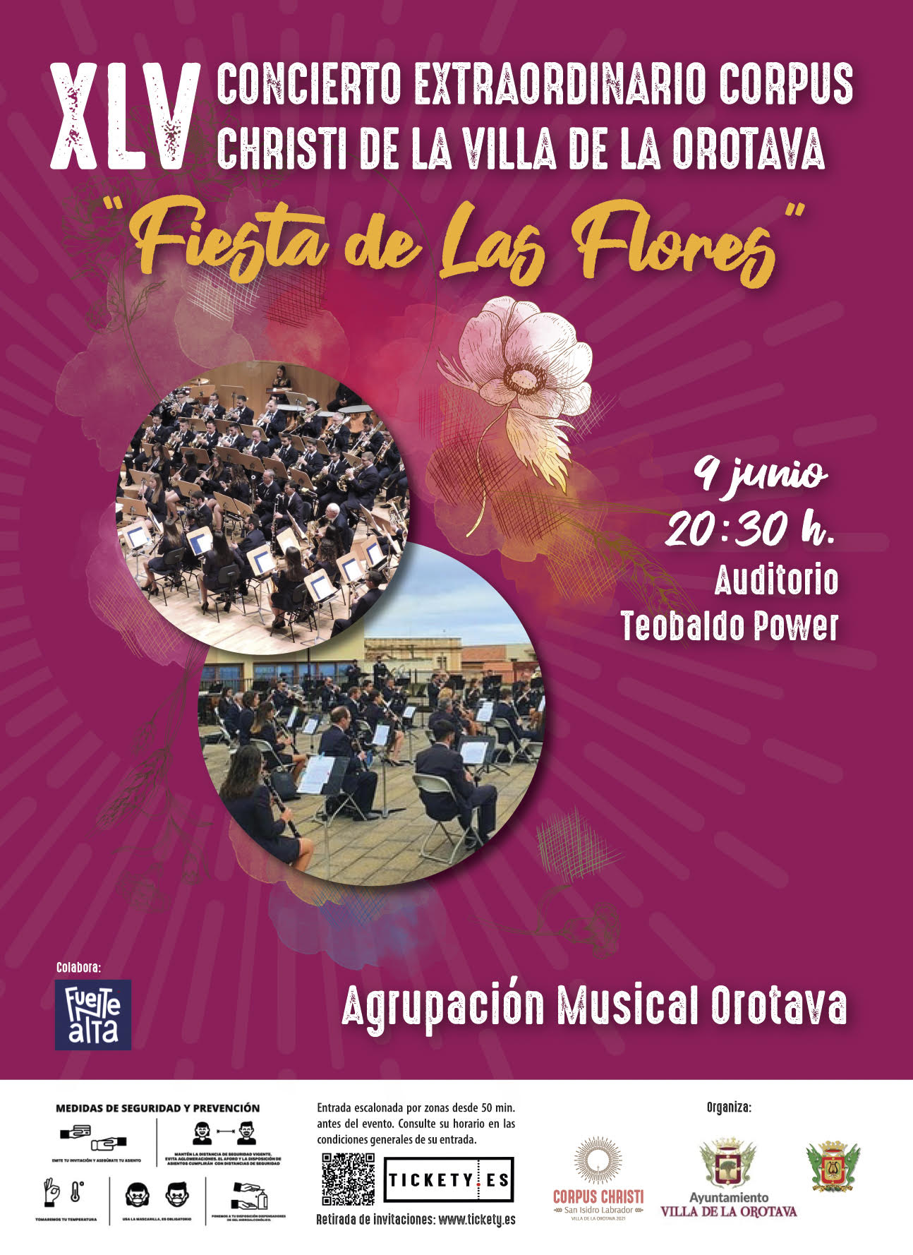 La Agrupación Musical Orotava tiene ofrecerá el próximo 9 de junio, a partir de las 20:30 horas, en el Auditorio Teobaldo Power, su XLV Concierto Extraordinario Corpus Christi ‘Fiesta de Las Flores’, acto enmarcado en la Semana Grande de las Fiestas Patronales de la Villa.