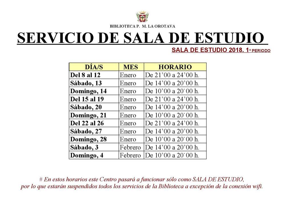 LA BIBLIOTECA DISPONE EL PRIMER PERIODO DE SALA DE ESTUDIO DE ESTE AÑO 2018