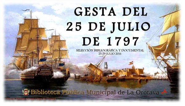 La Biblioteca Pública Municipal de La Orotava inaugura hoy una exposición sobre la Gesta del 25 de julio de 1797. Se trata de una selección documental de sus fondos particulares y hemerográficos, -entre los que destacan la crónica realizada para la Ilustración de Canarias en 1882, las biografías de principios del siglo XX sobre el almirante Nelson y las redacciones con motivo de la celebración del primer centenario en 1897-, así como una amplia muestra de obras contemporáneas.