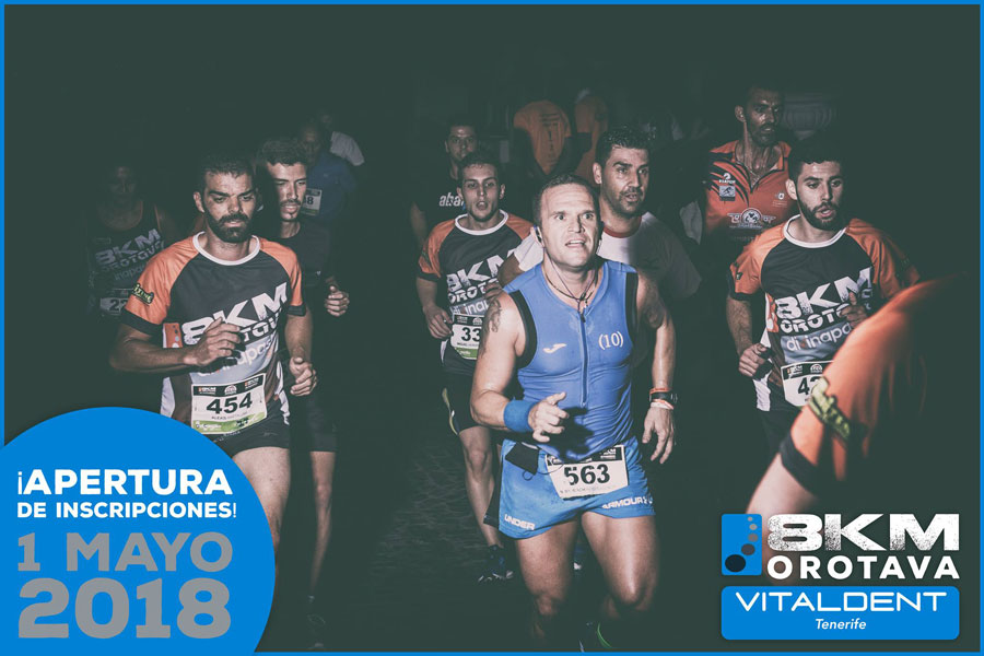 La séptima edición de la Carrera Nocturna 8KM La Orotava Vitaldent Tenerife ya es una realidad. La prueba norteña, que se celebrará el próximo 30 de junio, abrirá su plazo de inscripciones el día 1 de mayo coincidiendo también con la apertura de la inscripción para la edición de 2018 de la Media Maratón Nocturna de Puerto de la Cruz, organizada también por la AD Maskmororun.