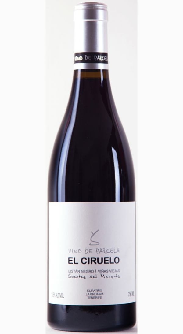Roberto define Suertes del Marqués El Ciruelo, como el vino de Soagranorte donde domina más el suelo volcánico, con orientación Norte y altura de 550 metros, que en condiciones climatológicas buenas, consigue como resultado una maduración excepcional. Esta parcela de casi una hectárea, presenta el suelo más complejo y se elaboraron solo 1950 botellas en el 2011, con variedad 100% listan negro de viñas de 80 años.