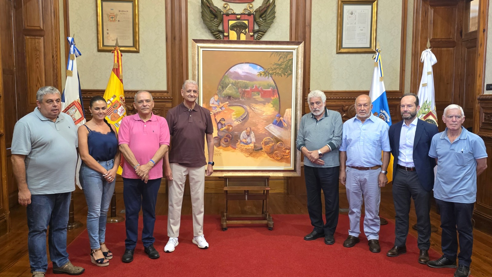 El cartel anunciador y los principales actos que conformarán el programa han sido presentados este martes [29 de julio] en el salón noble de la Casa Consistorial villera de la mano del alcalde Francisco Linares; el consejero insular de Desarrollo Económico, Efraín Medina; el presidente y gerente de la Asociación Cultural Pinolere, Leoncio Luis y Jesús García, respectivamente. También se contó con la presencia de la concejala delegada de este núcleo urbano, Yurena Luis; el director de la oficina de Cajasiete en La Orotava, Pablo Ascanio, y autor del cartel anunciador de esta edición de aniversario, Mohamed Osman, prestigioso acuarelista nacido en El Cairo que reside en La Orotava desde el año 1986, y siempre ha estado comprometido con el patrimonio natural, arquitectónico y tradicional de las islas.
