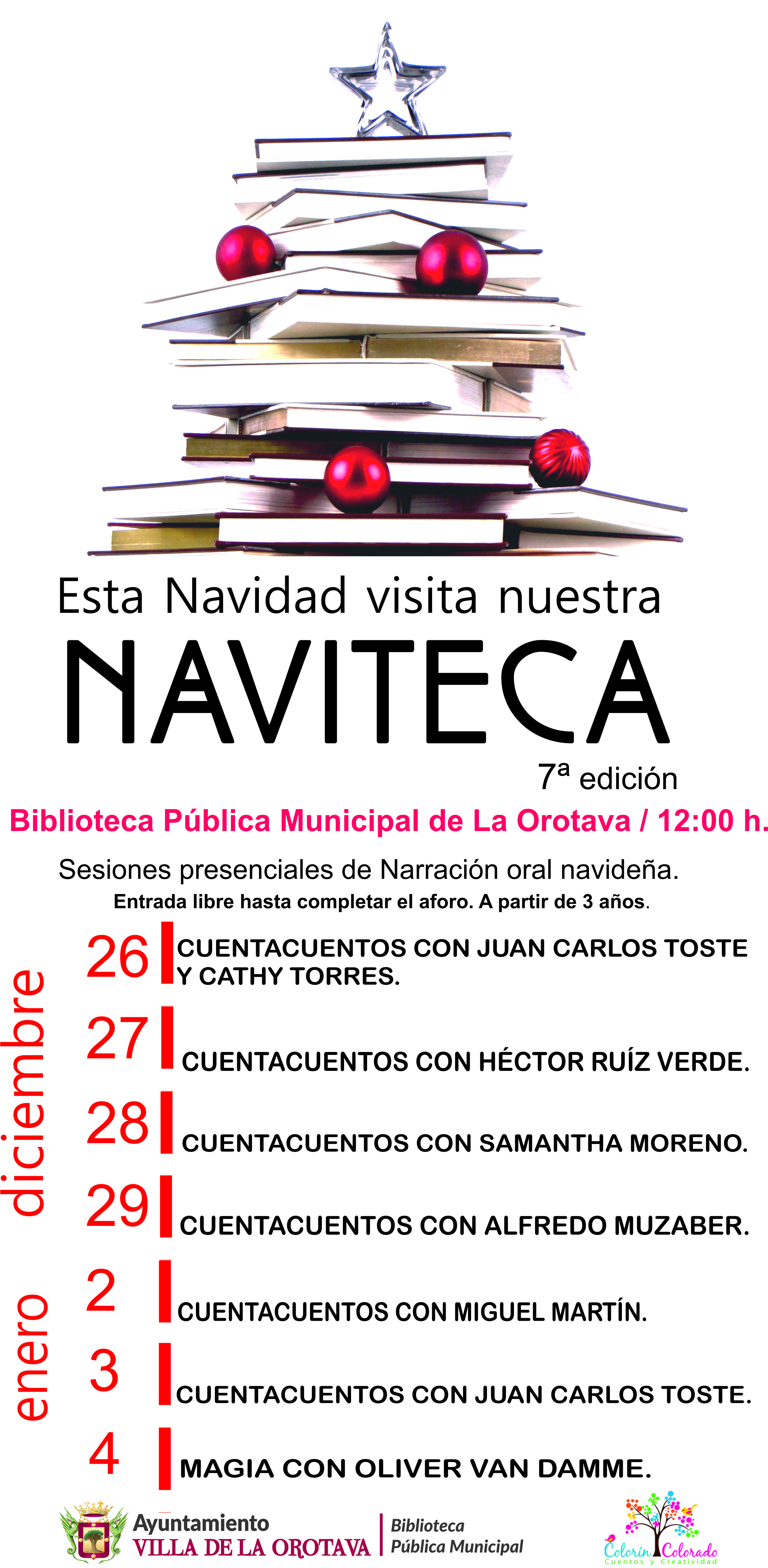 La Biblioteca Municipal va a desarrollar por séptimo año consecutivo la actividad de dinamización infantil denominado "NAVITECA", un programa de narraciones orales para los más pequeños y toda la familia, que consta de siete sesiones de cuentacuentos para las mañanas de cada uno de los días laborables de la Navidad.