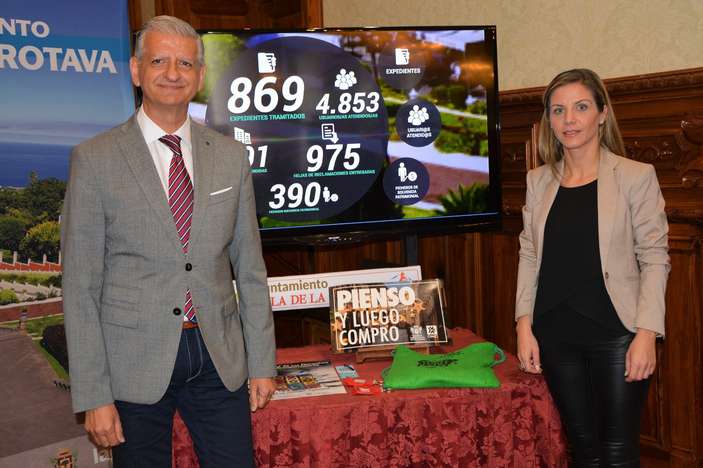 La Oficina Municipal de Información al Consumidor (OMIC) de La Orotava atendió a lo largo del pasado año a 4.853 usuarios. Un total de 869 fueron reclamaciones, y de éstas se han resuelto 703 que es el 81%. El 19% restante (166) está en trámite. También es de destacar que casi el 50% de las reclamaciones se resuelve a través de la mediación. Por sectores, la telefonía sigue estando en el puesto número uno de las reclamaciones, con 38´45%, y en el segundo lugar está la banca con un 20´74 % (sobre todo por el tema de las cláusulas suelo). Le siguen las motivadas por viajes, el 15.17%, y los relacionados con electrodomésticos, el 8.72%. Estos datos, incluidos en la memoria anual, se presentaron este jueves 15 de marzo, Día Mundial de los Derechos de los Consumidores, de la mano del alcalde Francisco Linares, y la concejala delegada de Consumo, María Eugenia Mesa.