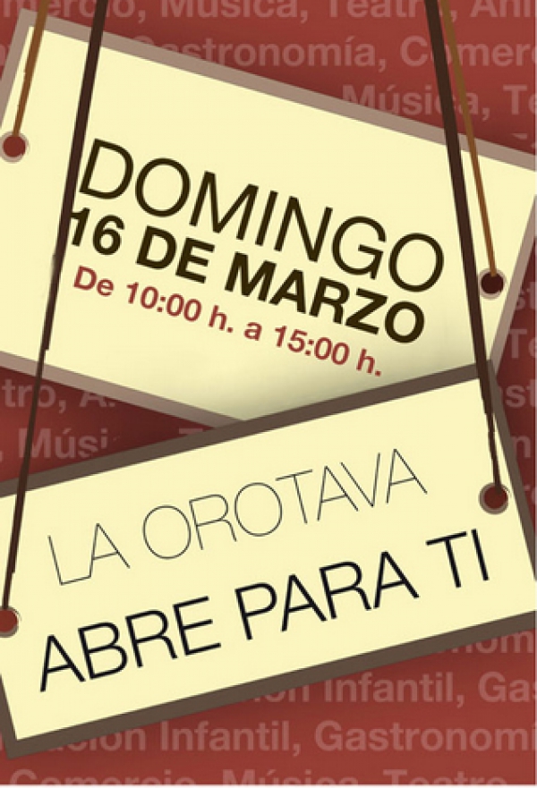 “La Orotava abre para ti” es el lema de la nueva campaña orientada a potenciar la actividad empresarial en la Villa. Tras la declaración del centro urbano como Zona de Gran Afluencia Turística, los establecimientos ubicados en esta área podrán abrir todos los domingos del año, haciéndolo ya grandes empresas como las dedicadas al sector de la alimentación (Hiperdino y Alteza). Pero evidentemente, ante las limitaciones con las que se encuentran los pequeños y medianos empresarios para poder llevarlo a cabo, el área de Desarrollo Económico Local del Ayuntamiento, conjuntamente con las asociaciones empresariales ha planteado a los empresarios de la zona centro planificar cuatro domingos al año para abrir, ofreciéndose actividades complementarias y dinamizadoras para hacerlo más atractivo.