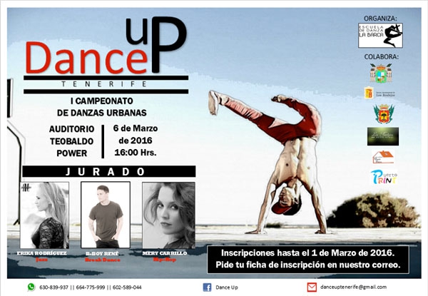 Esta primera edición del campeonato de baile urbano DANCE UP de la isla de Tenerife, se encuentra dirigida a todos aquellos jóvenes canarios que buscan expresar sus inquietudes artísticas a través de la danza y el baile.