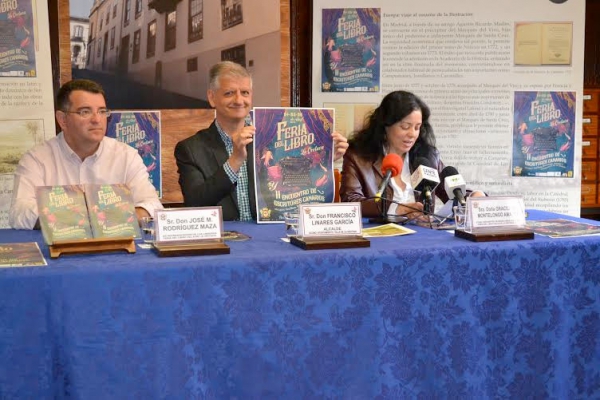 La Biblioteca Municipal acogió en la mañana de hoy viernes, 17 de abril, la presentación de la Feria del Libro y del citado Encuentro de Escritores Canarios, dedicado este año a la poesía. El alcalde Francisco Linares subrayó que ''en estos últimos años nuestra feria ha tenido un gran impulso y proyección, convirtiéndose en un referente para toda Canarias e incluso se ha catalogado entre las primeras y más importantes celebradas en el archipiélago''. Aprovechó la ocasión para invitar a los vecinos y a los ciudadanos de otros puntos de la isla a disfrutar del ambiente que en estos días se encontrará en las calles y plazas del municipio; y felicitó a Macarena Díaz, joven autora del cartel por su magnífico diseño, así como al resto de personas que se implica en la organización de la muestra y a la Dirección General de Patrimonio Cultural del Gobierno de Canarias por su colaboración.