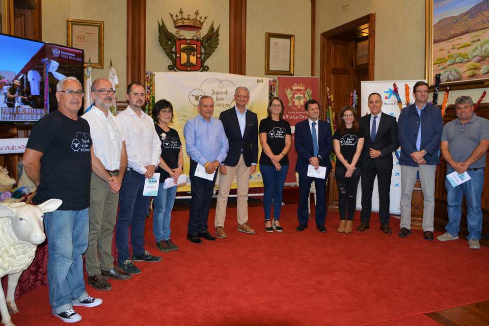 El Salón de Plenos del Ayuntamiento de La Orotava acogió este martes [14 de mayo] la presentación de la sexta edición del Festival de Lana de Canarias, a cargo del consejero insular, Efraín Medina, y el alcalde de la Villa, Francisco Linares. También se contó con la concejala y artesana, Delia Escobar; la representante del Espacio Artesano La Ranilla, Lola Reyes, y el director de área de negocios de Tenerife Norte de la Caixa, Antonio Manuel Fragoso, ya que participan en esta edición a través de la ‘Obra Social La Caixa’