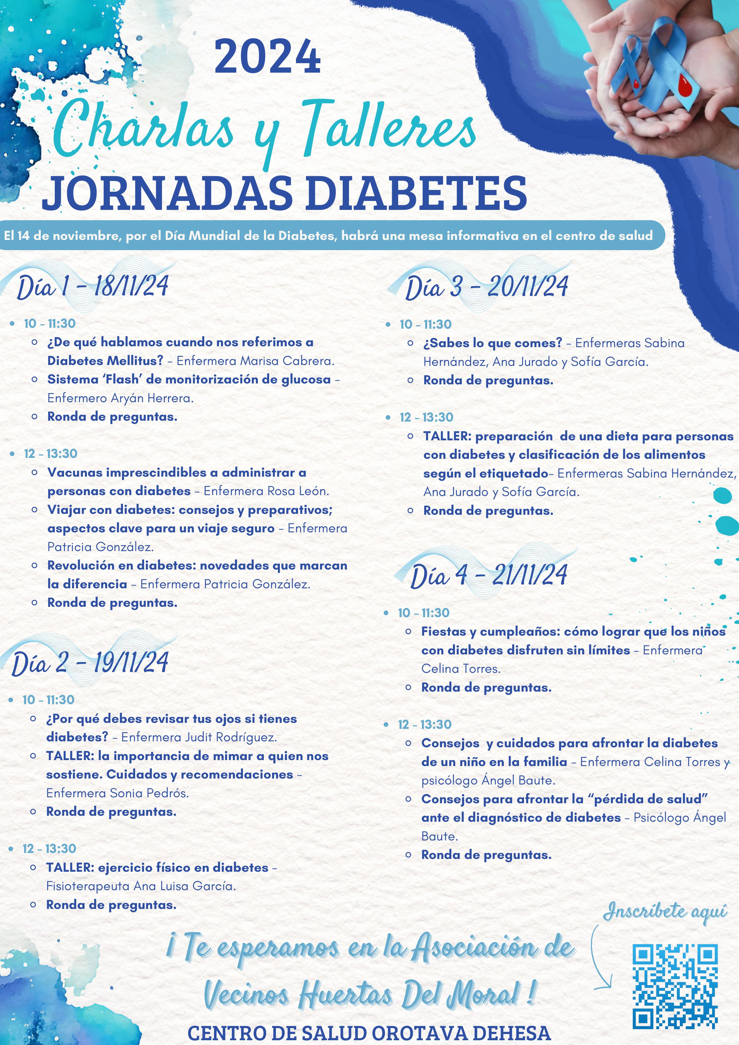 La entrada es gratuita, con aforo limitado, previa inscripción en la web municipal https://www.laorotava.es/es/agenda/charlas-y-talleres-jornada-diabetes