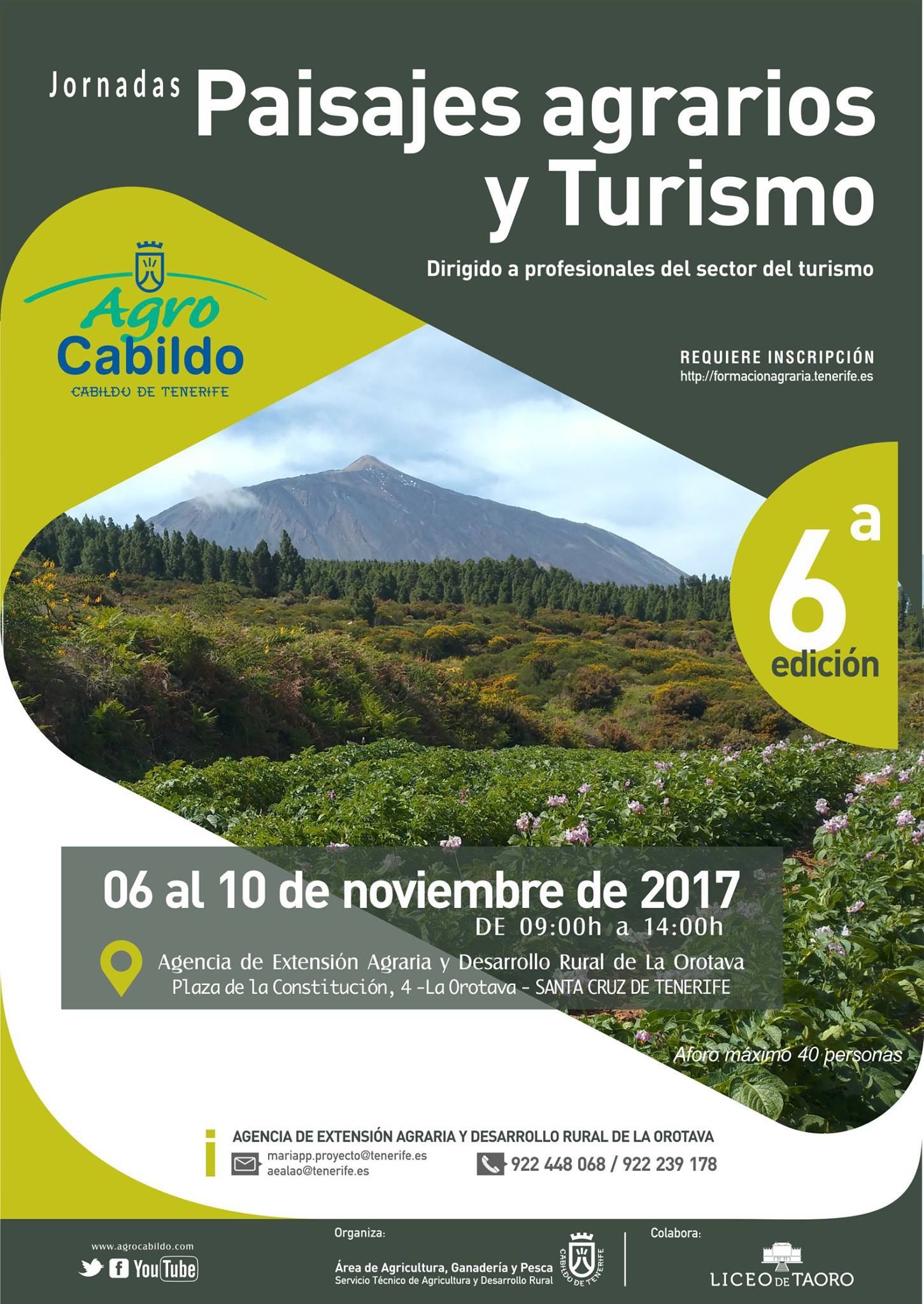 El Cabildo de Tenerife apuesta por el potencial del paisaje agrario como recurso turístico a través de la sexta edición de las jornadas ´Paisajes agrarios y turismo´, que se desarrollarán del 6 al 10 de noviembre en la Agencia de Extensión Agraria de La Orotava.
