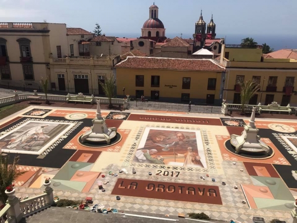 Desde hace 40 días se trabaja en la confección del Magno Tapiz de la Plaza del Ayuntamiento confeccionado con arenas volcánicas del Parque Nacional del Teide, Patrimonio de la Humanidad. Es el mayor tapiz de arte efímero del mundo, y así lo reconoció en 2006 el Libro de los Récords Guinness. Además, esta celebración de la Infraoctava del Corpus en la Villa se ha convertido en una de las fiestas más importantes de Canarias e incluso de España, y es conocida en el mundo entero