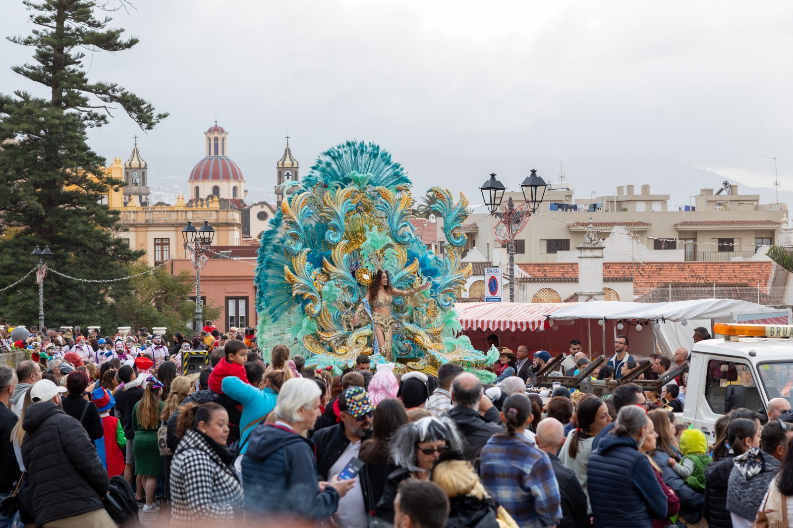 El Coso partirá, como ya es tradición, de la Cruz del Teide y seguirá el recorrido de otros años, por las calles Salazar, San Francisco, Carrera Escultor Estévez y calle Calvario hasta culminar en la Plaza de la Paz. Se estima, en comparación con anteriores ediciones, que unas 20.000 personas disfrutarán del colorido de este coso apoteósico del Carnaval de La Orotava, que se desarrollará durante unas tres horas aproximadamente. Y una vez se acabe este popular coso comenzará la verbena en la plaza de la Constitución a cargo de la orquesta Maquinaria y The Boys Machine.