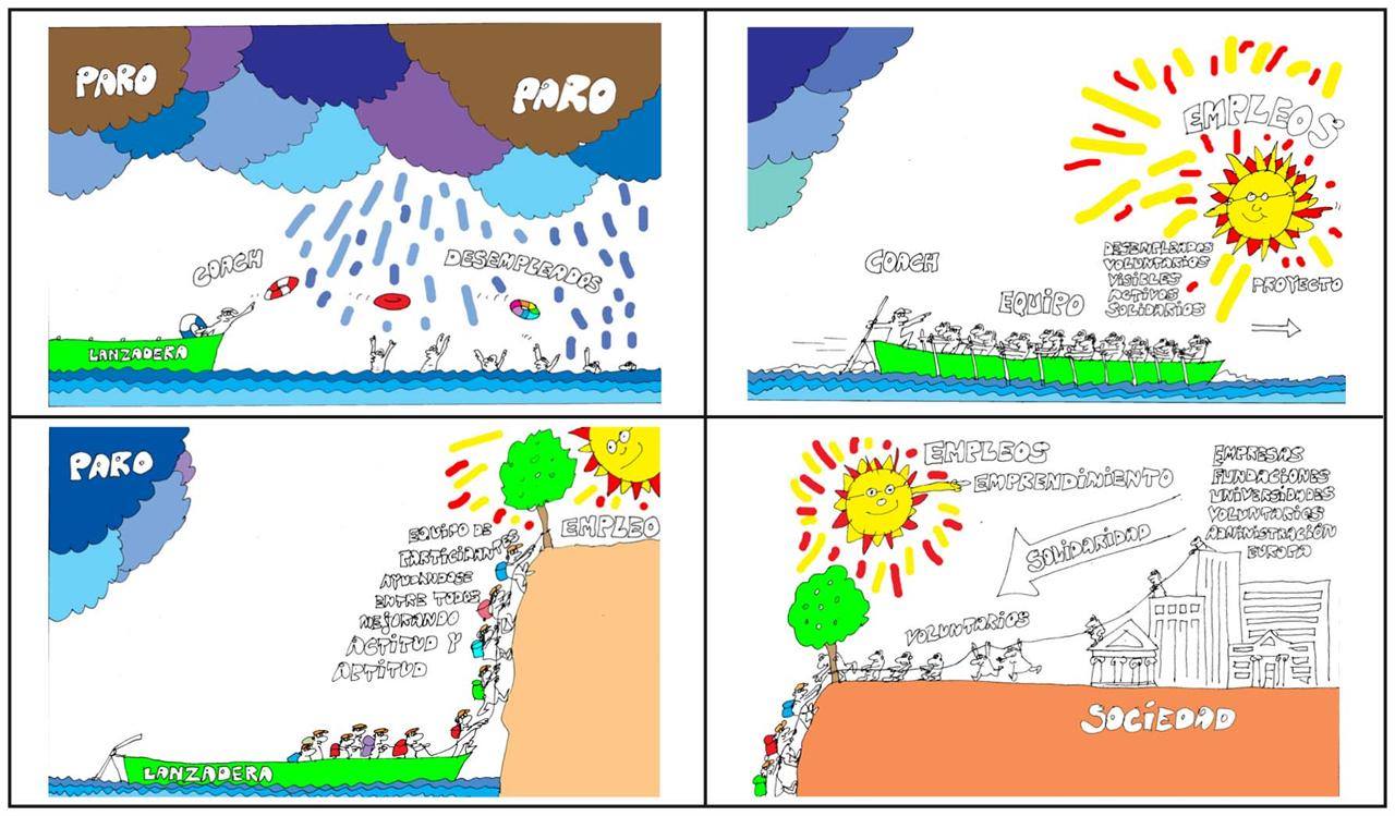 “La lanzadera no es un mero curso para actualizar el currículum. Tampoco es una agencia de colocación donde damos trabajo a los participantes. Es un programa intensivo de cinco meses para ayudar a personas desempleadas a activar y optimizar su búsqueda de trabajo en el mercado actual, con nuevas técnicas que les permiten ganar confianza y seguridad en las entrevistas, y con nuevas actividades que les acercan al tejido empresarial”, explican desde Fundación Santa María la Real.