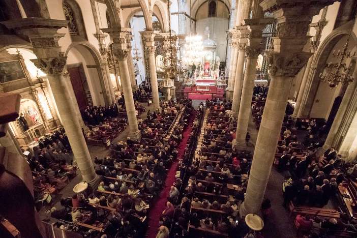 Es un acto de entrada libre, limitada únicamente por el aforo de la Iglesia y en el que últimamente mucha gente se queda por fuera escuchando ya que es imposible el acceder al templo.