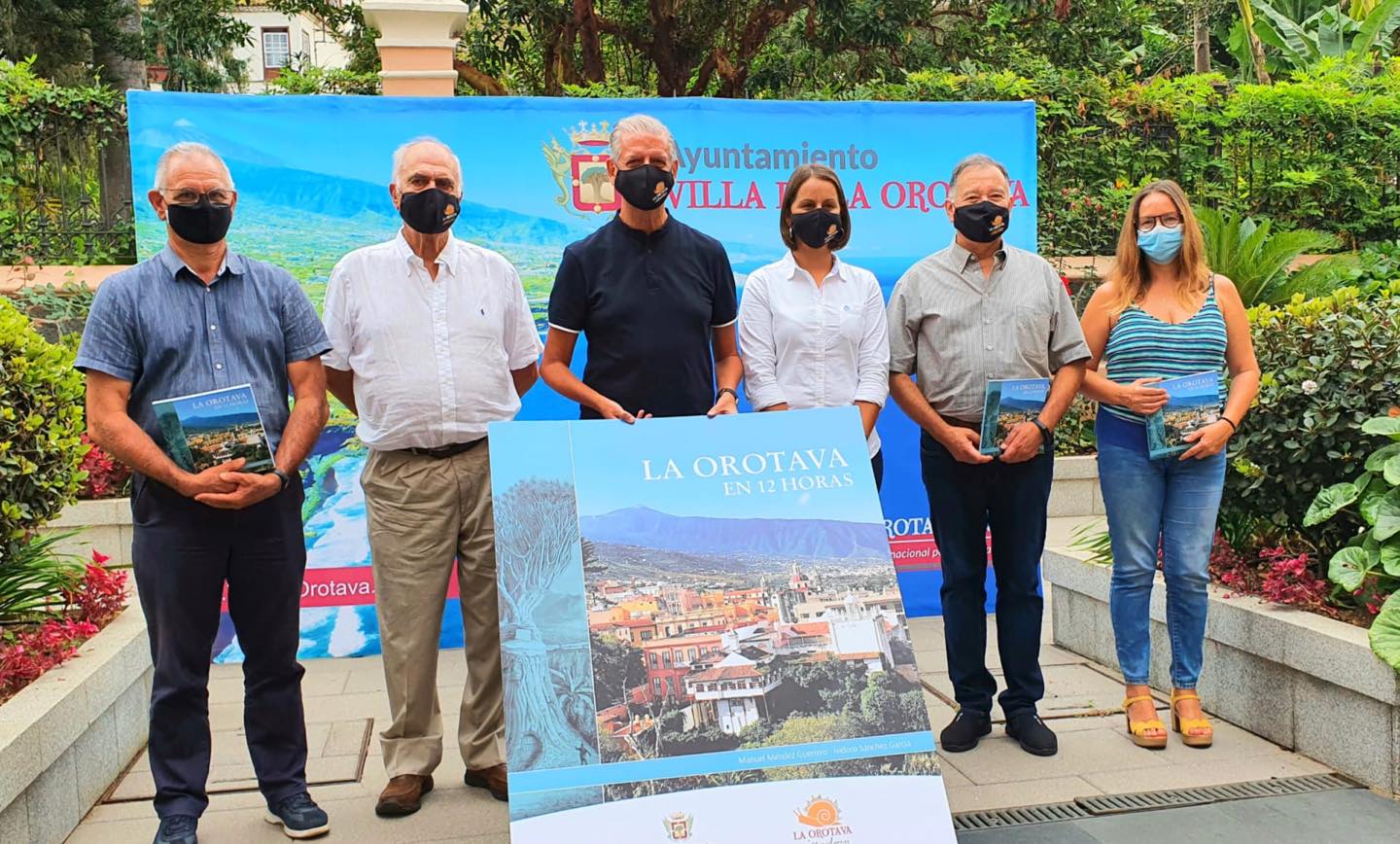En la mañana de hoy, el alcalde de La Orotava, Francisco Linares acompañado por la concejala de Turismo, Patrimonio Cultural y Museos Delia Escobar, los autores Manuel Méndez e Isidoro Sanchez han presentado el libro "La Orotava en 12 horas".
