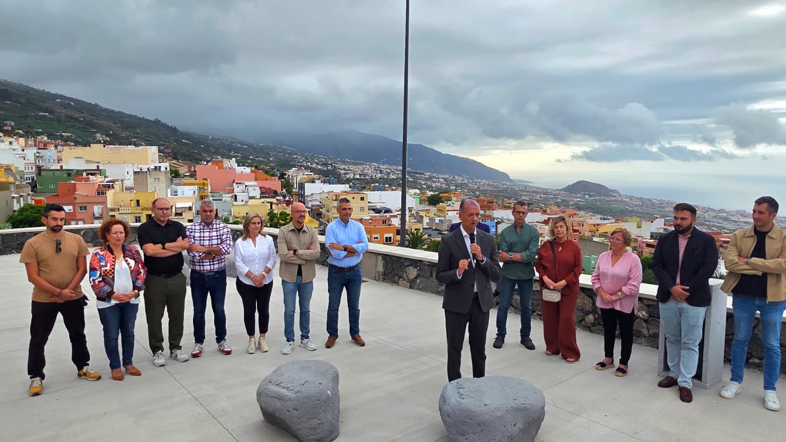 El municipio de La Orotava, y en concreto la urbanización de Los Trazos que se encuentra entre los barrios de La Piedad, La Fariña y Candelaria del Lomo, cuenta desde hoy con una gran zona de ocio y esparcimiento, un nuevo pulmón verde. El parque multifuncional, que ha supuesto una inversión que ronda 1.500.000 euros, lo inauguró este jueves [11 de septiembre] el alcalde Francisco Linares, acompañado otros miembros de la corporación municipal y vecinos. Linares subrayó que se trata de un parque innovador que apuesta por la sostenibilidad. Así las zonas verdes se han diseñado para un bajo consumo de agua y bajo mantenimiento, adaptándose a la nueva realidad climática. Se crean grandes espacios verdes sin hacer uso del césped u otras plantas que requieren un alto consumo de un recurso tan esencial como es el agua. Además, este espacio se convierte en un jardín temático de plantas autóctonas, pues cuenta con un amplio abanico de vegetación canaria, encontrándose, entre otras especies, tabaibas, palo blanco, mocán, acebuche, hayas, palmeras, dragos, madroños, barbusano, pino canario y sabina. Por ello, este parque es también una gran aula didáctica y puede cumplir una función educativa para que escolares o cualquier persona pueda conocer más sobre las especies autóctonas, ya que contará con paneles explicativos con las características de cada una de las especies. A pesar de la orografía del terreno y que ha dificultado el desarrollo del proyecto, en algunos puntos con una pendiente de hasta un 30%, el parque se ha diseñado con paseos y miradores, que se complementan con otros espacios para su uso y disfrute. Los más pequeños podrán contar con un parque infantil en un espacio privilegiado, aprovechando la parte alta del terreno, donde también se ubica una gran terraza-mirador. Por otro lado, se contará con una zona dedicada al ejercicio con la instalación de juegos biosaludables y un espacio para la calistenia. El parque se ubica en una zona con una población de unos 5.000 habitantes, aproximadamente, pero es un espacio abierto para el disfrute de la ciudadanía en general. Así, se aprovechó este proyecto para la mejora de la calle Puenteareas y ampliación del área de estacionamiento, por lo que la actuación global del proyecto abarcó 11.000 metros cuadrados. Se han creado en total 36 plazas de aparcamiento, dos de ellas para personas con discapacidad. Y se prevé ampliar el espacio para estacionar.