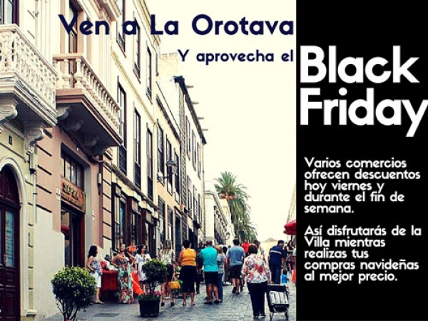 La Orotava se apunta así al llamado Black Friday, día en el que se inaugura la temporada de compras navideñas con significativas rebajas. En este caso son muchos los comercios locales que han querido aprovechar este reclamo comercial, ofreciendo descuentos no sólo hoy viernes, 27 de noviembre, sino también durante el fin de semana.