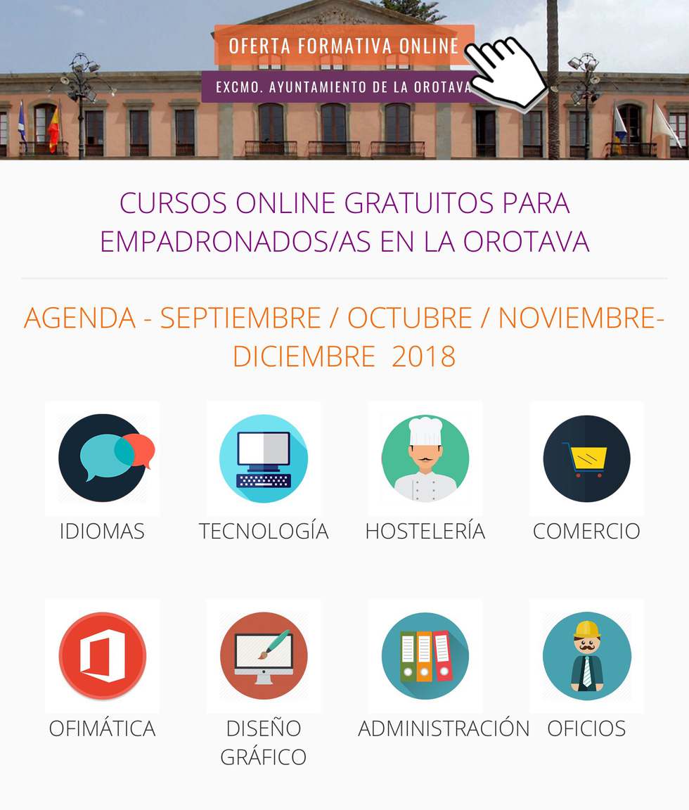 La persona interesada, a partir del próximo 15 de enero, puede volver a entrar en la plataforma que se encuentra en la web corporativa laorotava.es. Accede a cada uno de los módulos y busca el curso que más le interese. Al principio, para matricularse, solo deberá acceder y rellenar los datos que se indican. Y una vez se coteje con el censo municipal, el interesado recibirá un correo electrónico con el usuario y contraseña para acceder a la plataforma. Los vecinos podrán realizar varios cursos, pero deberán acabar el anterior para poder acceder a otro.