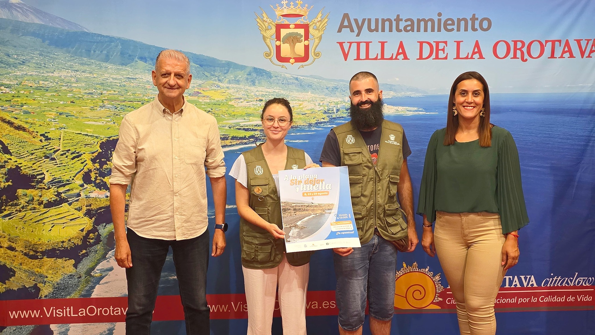 El Ayuntamiento de La Orotava, a través de la concejalía de Formación y Empleo que dirige Deisy Ramos, y mediante el proyecto de empleo “La Orotava Sostenible 2025” del Cabildo de Tenerife, desarrollará en este este mes de agosto una campaña de sostenibilidad en la playa del Bollullo. La iniciativa, bajo el lema “A la playa sin dejar huella”, se enmarca dentro de otra campaña global denominada ‘Por una Orotava limpia’ que nace de la necesidad de concienciar a la población para cuidar y proteger su entorno, por lo que se promueven prácticas respetuosas con el medio ambiente. En concreto, la campaña se desarrollará los viernes de este mes de agosto, los días 8, 22 y 29 de agosto, en horario de 10.00 a 13.00 horas.