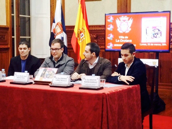 El Salón de Plenos del Ayuntamiento de La Orotava acogió el pasado lunes, 23 de marzo, la presentación de la tercera guía de la Colección de autoguías históricas de La Orotava, que en este caso versó sobre "La Semana Santa villera", dedicada al rico patrimonio religioso del municipio, con especial mención a sus templos, su imaginería, los bienes de culto y el amplio número de tradiciones procesionales que se desarrollan durante la Semana Santa orotavense.