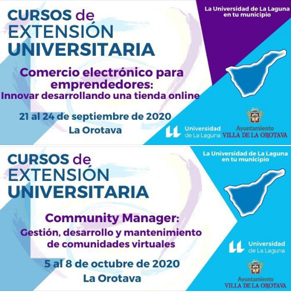 Estos cursos, que se impartirán en el Aula Multimedia del Consistorio villero, se encuentran dentro de la oferta educativa que ofrece la Universidad de La Laguna a través de Extensión Universitaria en el ámbito municipal para este 2020. En esta línea, recordar que una de las actividades de apertura a la sociedad más ambiciosas que acomete cada año la ULL es la programación de cursos coorganizados con varios ayuntamientos de Tenerife, con el objetivo de llevar la formación académica a todos los rincones de la isla. El precio de cada curso es de 20 euros por matricula, aunque para las personas empadronadas en el municipio villero será de 10 euros. Se puede realizar la inscripción, a partir del 1 de septiembre, entrando en la web de la universidad ull.es/cursosdeextensión.com. Para más información se puede llamar al teléfono 922 319 616 / 26, y también se puede contactar a través del correo extuni@ull.es. Los cursos se impartirán en horario de tarde y tienen una duración de cuatro días cada uno, convalidables por 1 crédito ECTS.